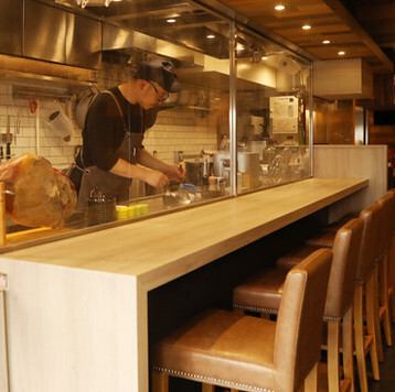 【デートや一人飲みに】お一人様でも気兼ねなく過ごせるカウンター席は、お仕事帰りの一杯や自分へのご褒美ディナーに最適です♪目の前で調理の活気が感じられるお席は、デートでのご利用にもおすすめ。ワインやカクテルを片手に、会話を楽しんだり、静かに料理を味わったりと、思い思いのスタイルでご活用ください◎